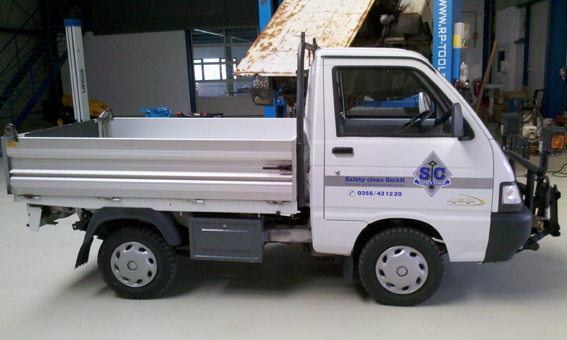 Im Winter stehen uns im Gewerbepark mehrere Hallen (auch für LKWs) zur Verfügung. Die Beschriftung erfolgt auf Wunsch auch vor Ort.